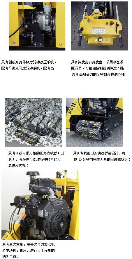 用于橋面鋪設(shè)瀝青或者舊的混凝土地面上重新攤鋪混凝土之前,清除水泥浮漿或者銑平拉毛,也可用于清除建筑施工中遺留的堅(jiān)硬灰渣。